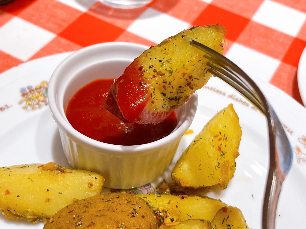 「ってのは建前で。ほんとはこのハーブポテトってやつを前から食べて見たかったんだよね」