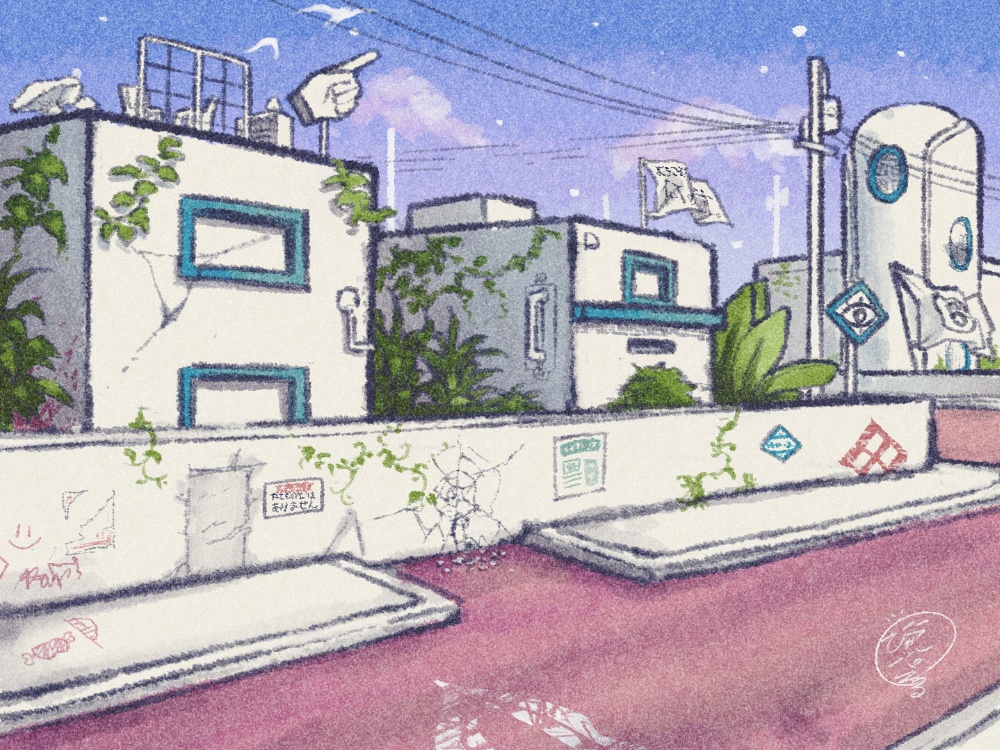 80〜90年代の日本の景色を彷彿とさせる街並みで、シティの外の世界を行き来するターミナルがある。