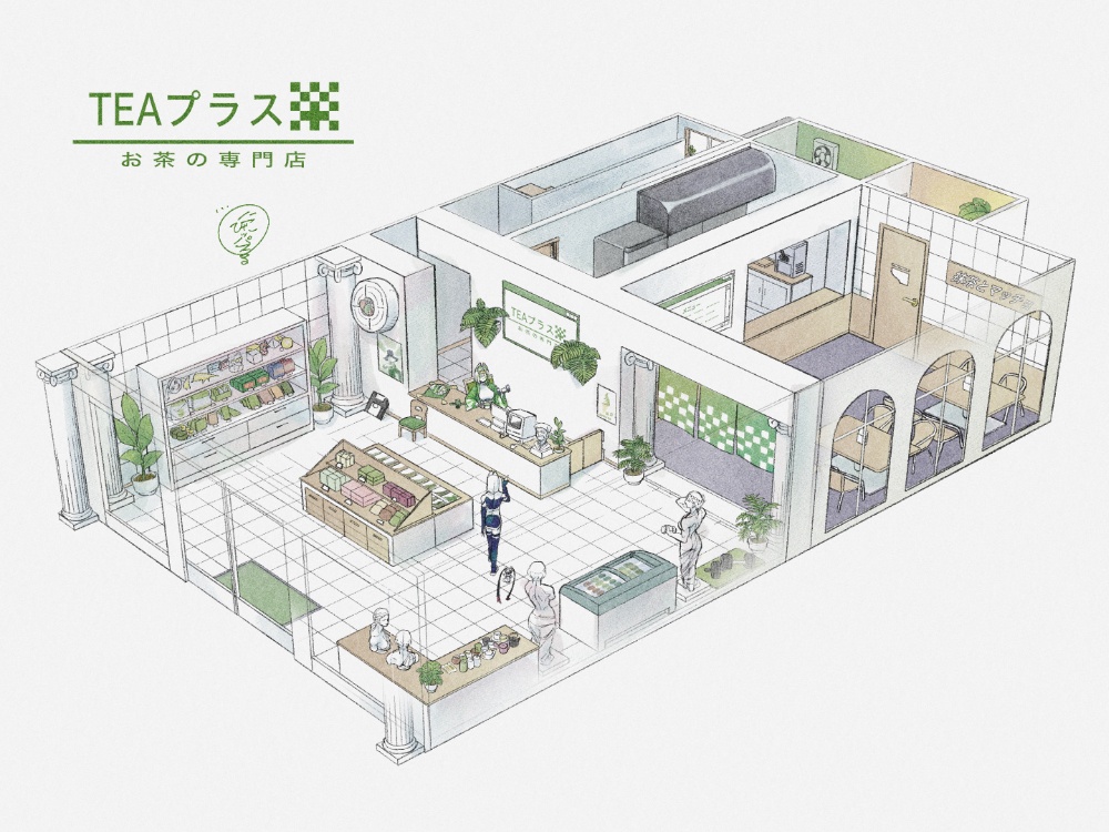 抹茶をはじめとした粉末茶や茶葉のほかに、青汁やプロテイン、茶器やトレーニング道具など、抹筋に染まった品揃えとなっている。